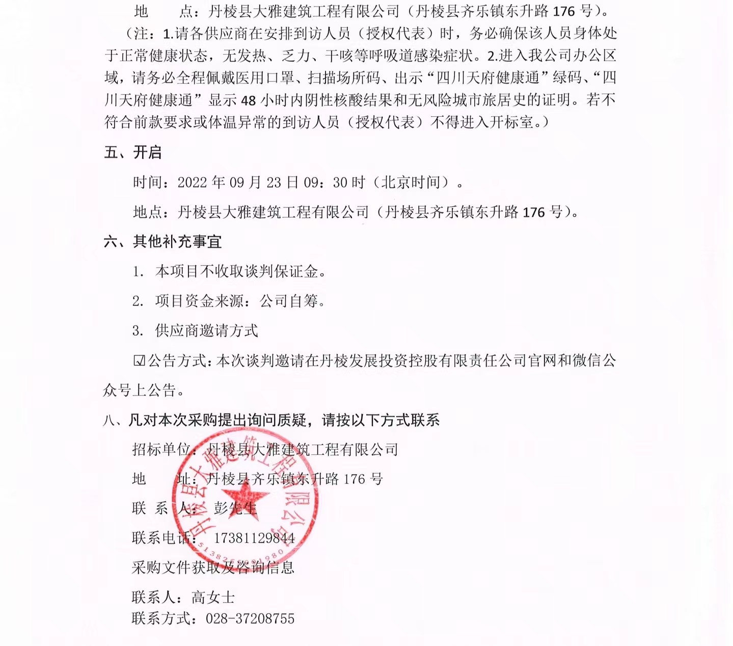 丹棱縣全域農(nóng)旅融合仁美鎮(zhèn)生態(tài)濕地公園(社區(qū)公園)、廣場(chǎng)及配套旅游設(shè)施建設(shè)項(xiàng)目稻田餐廳工程幕墻專(zhuān)業(yè)分包項(xiàng)目談判邀請(qǐng)公告