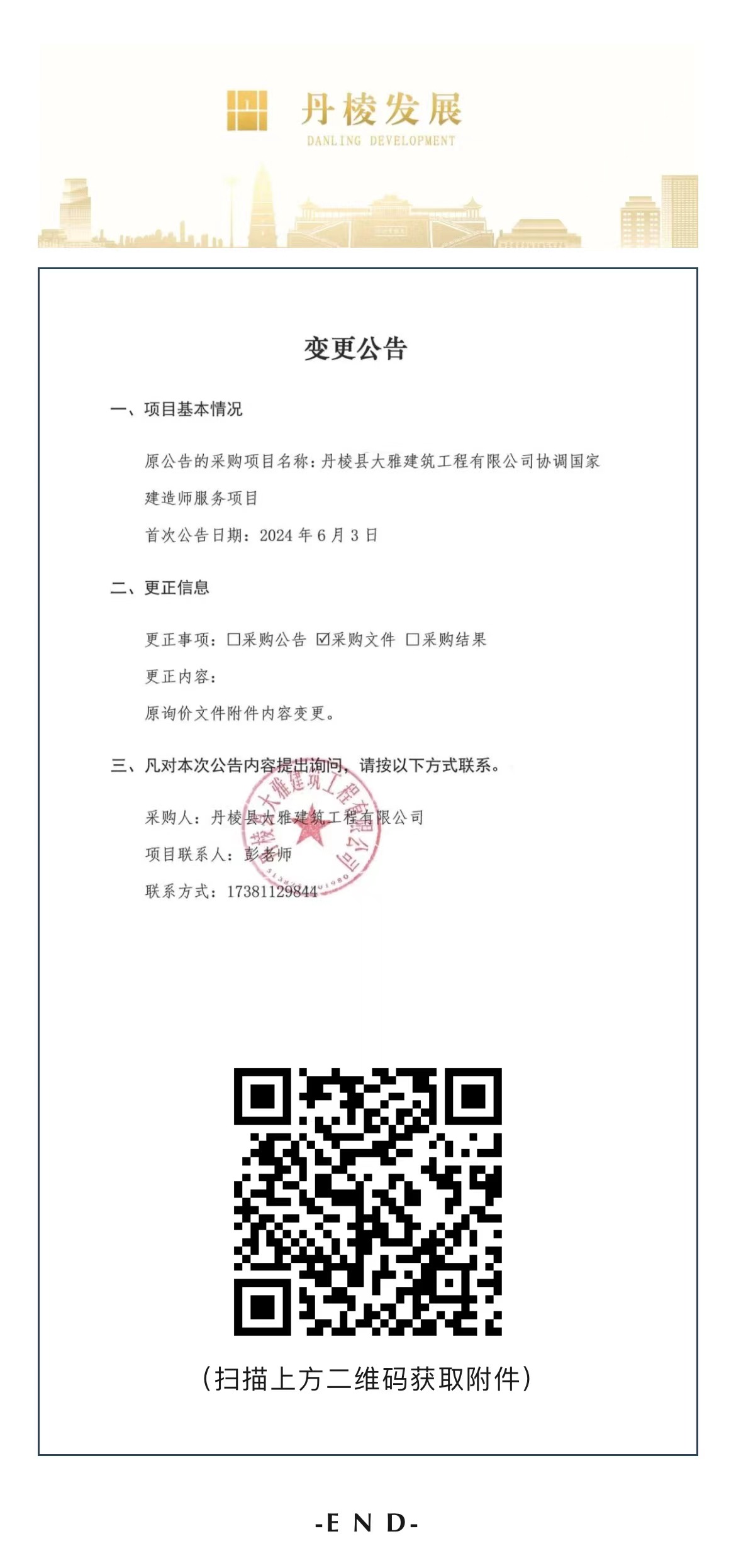 丹棱縣大雅建筑工程有限公司協(xié)調(diào)國(guó)家建造師服務(wù)項(xiàng)目變更公告