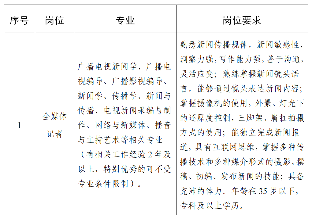 因業(yè)務(wù)發(fā)展需要,丹棱縣融媒體中心委托丹棱縣大雅家園勞務(wù)服務(wù)有限公司面向社會(huì)公開(kāi)招聘全媒體記者1名,具體內(nèi)容如下: