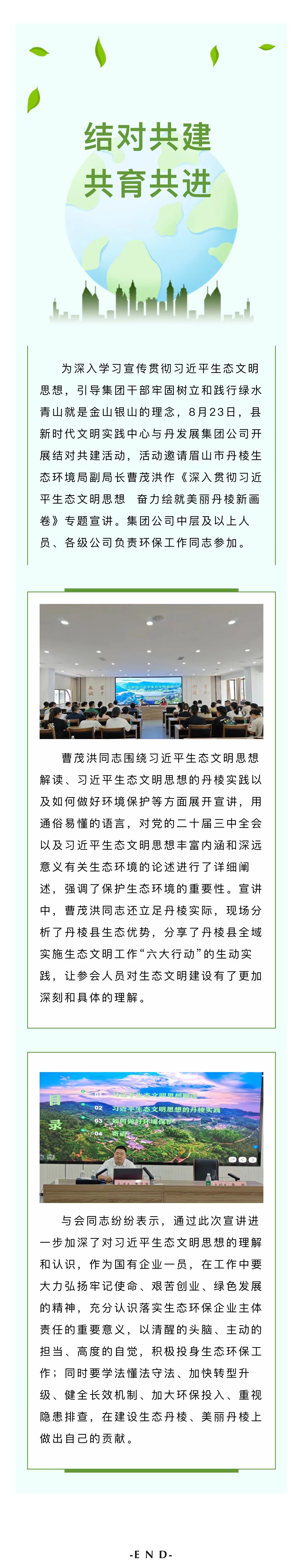 結(jié)對(duì)共建,共育共進(jìn)|縣新時(shí)代文明實(shí)踐中心與丹發(fā)展集團(tuán)公司舉辦習(xí)近平生態(tài)文明思想專題宣講活動(dòng)