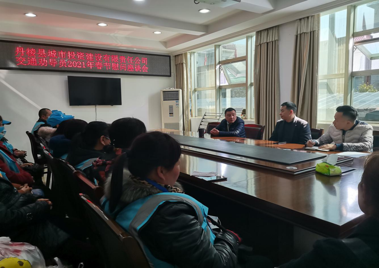 春節(jié)將至,歲寒情深。2月5日,丹棱縣城市投資建設(shè)有限責(zé)任公司組織召開了交通勸導(dǎo)員2021年春節(jié)慰問座談會,會議在丹發(fā)展公司董事長趙勇同志的主持下召開。