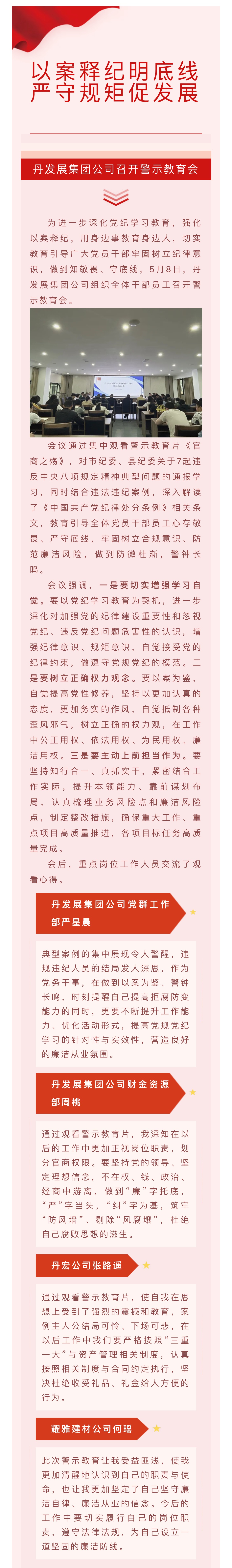 以案釋紀(jì)明底線,嚴(yán)守規(guī)矩促發(fā)展丨丹發(fā)展集團(tuán)公司召開警示教育會(huì)