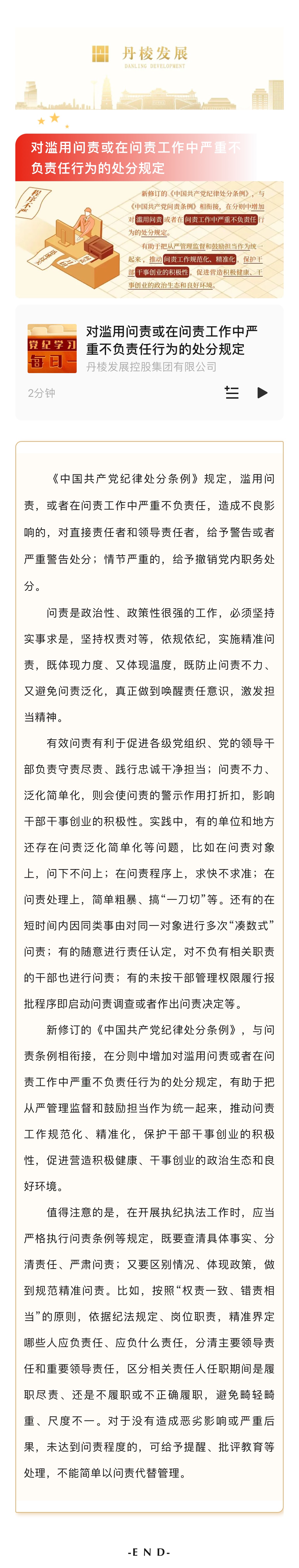 【黨紀(jì)學(xué)習(xí)教育】每日一課丨對(duì)濫用問(wèn)責(zé)或在問(wèn)責(zé)工作中嚴(yán)重不負(fù)責(zé)任行為的處分規(guī)定
